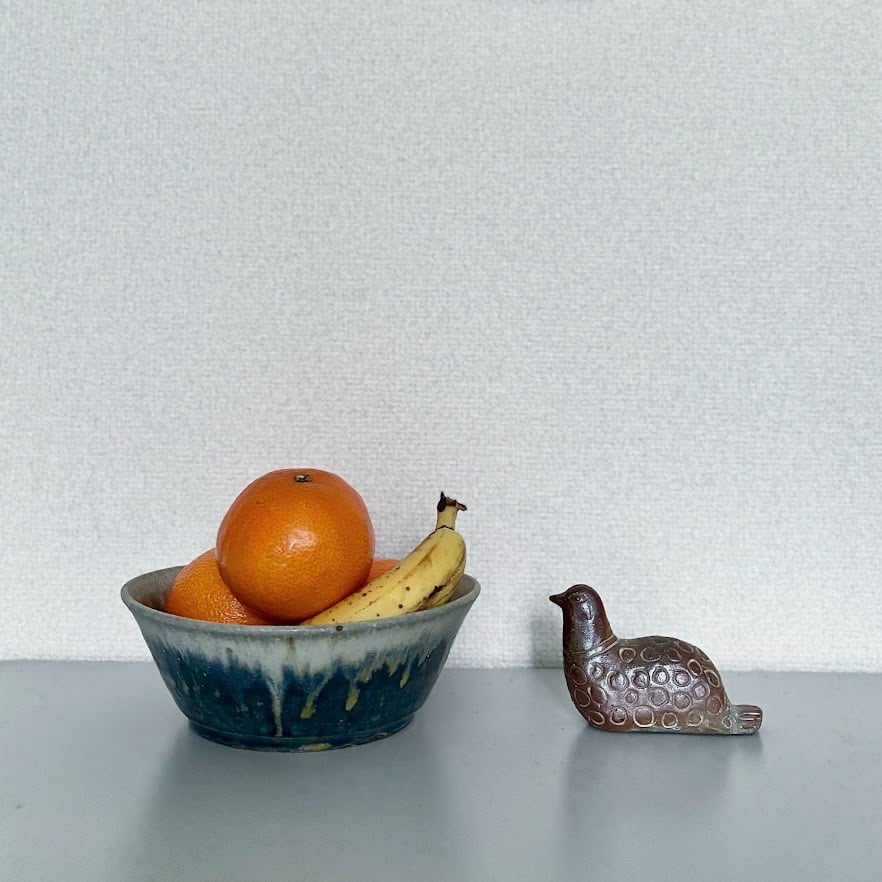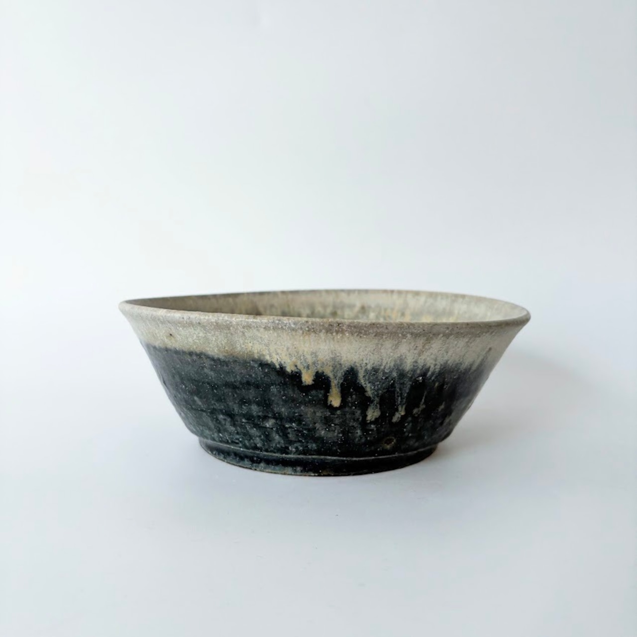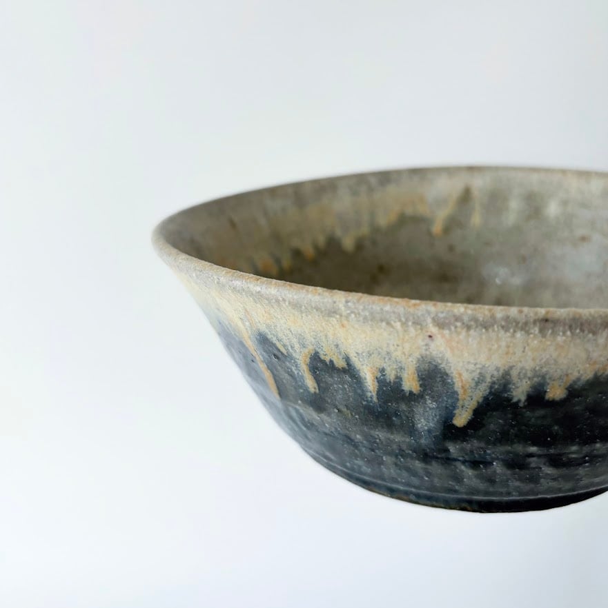 深い青の釉薬の流れが美しい深鉢です。