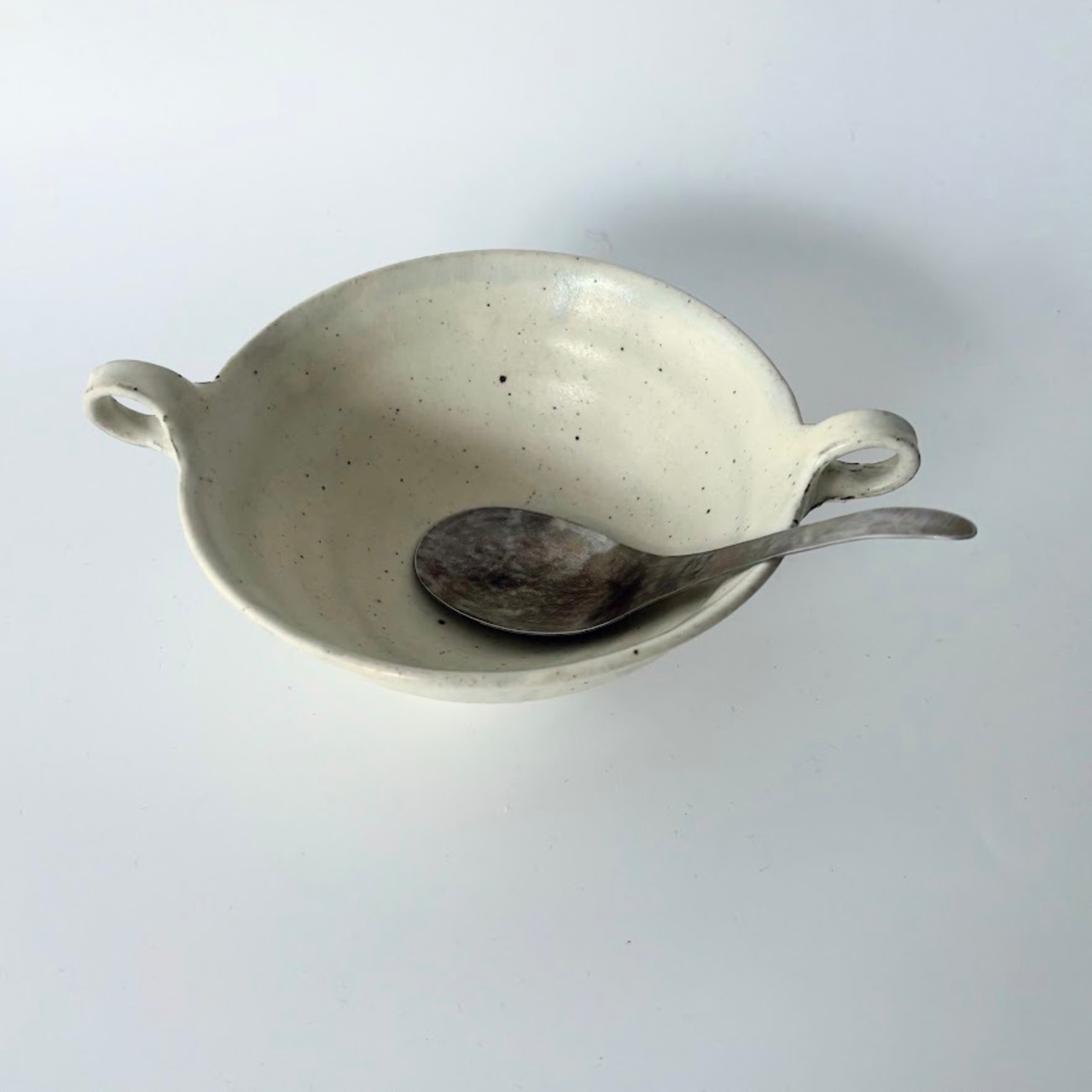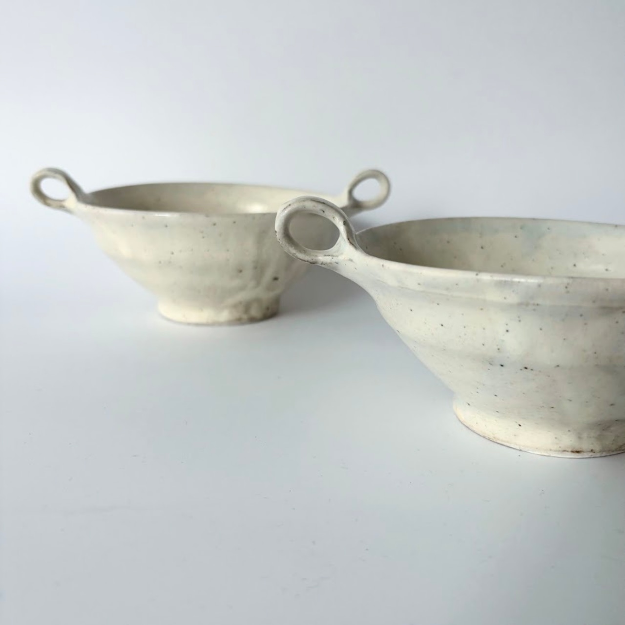 マットな白と、ちょこんとついた耳のような持ち手が愛らしい一品です。