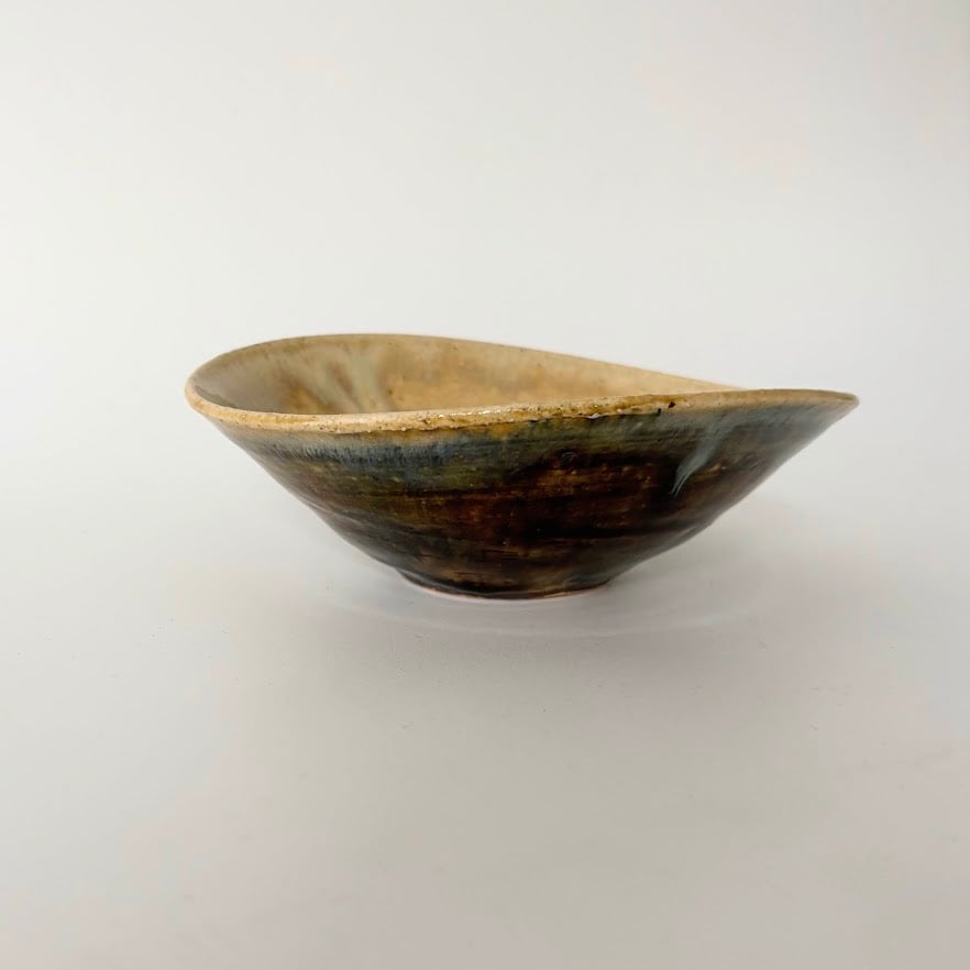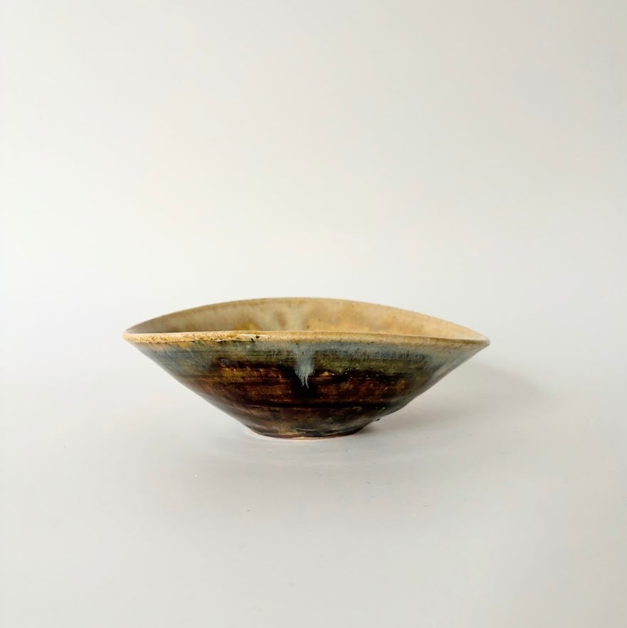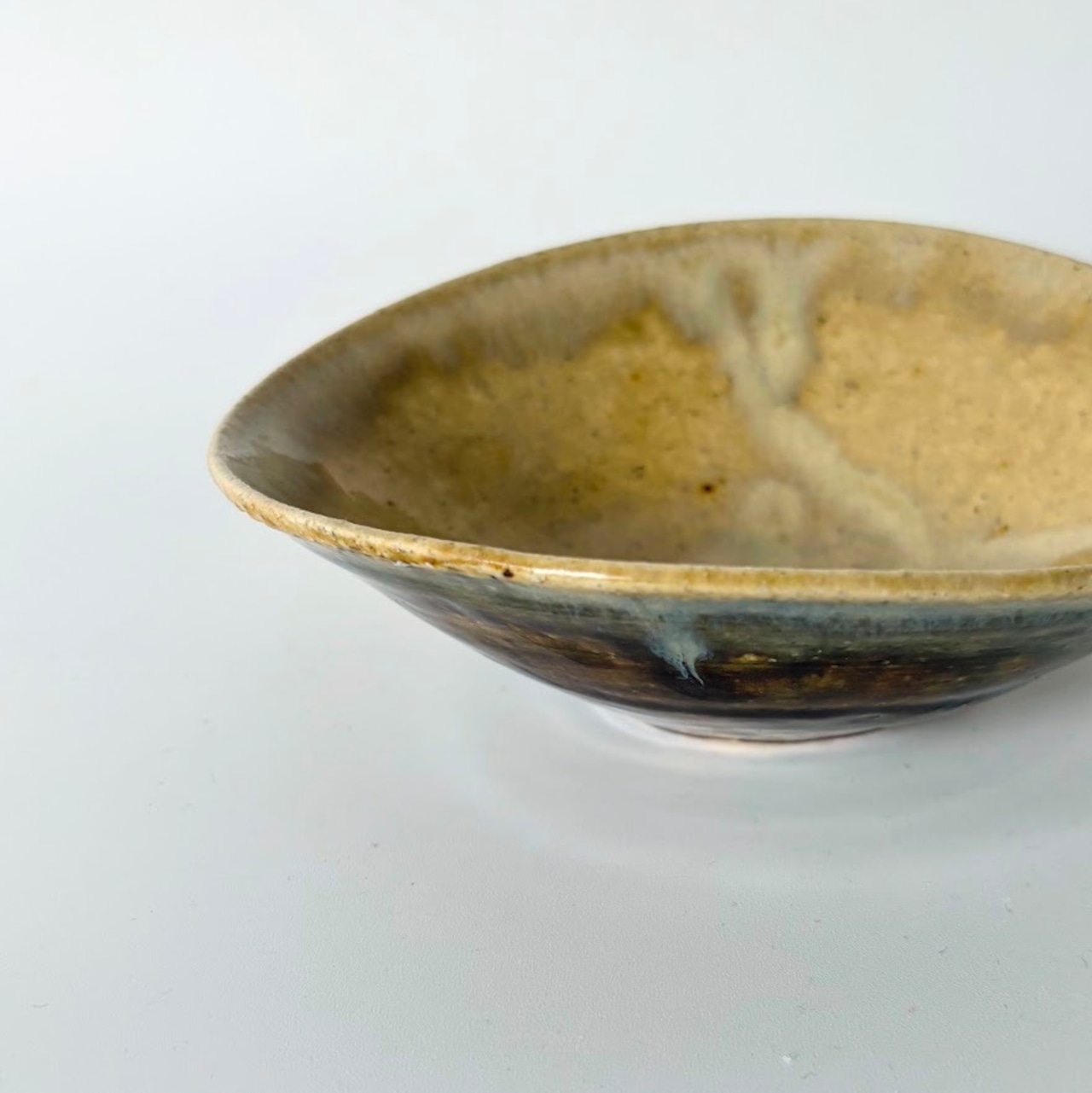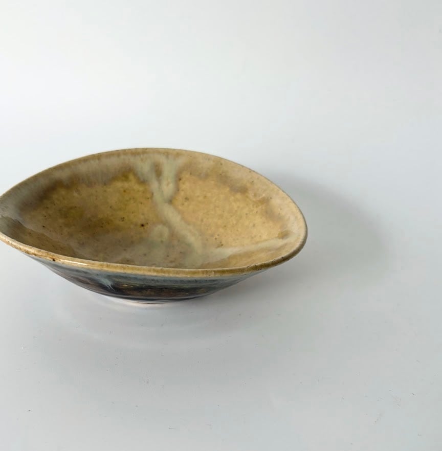 八木橋昇 白飴掛け分け 楕円平鉢5寸