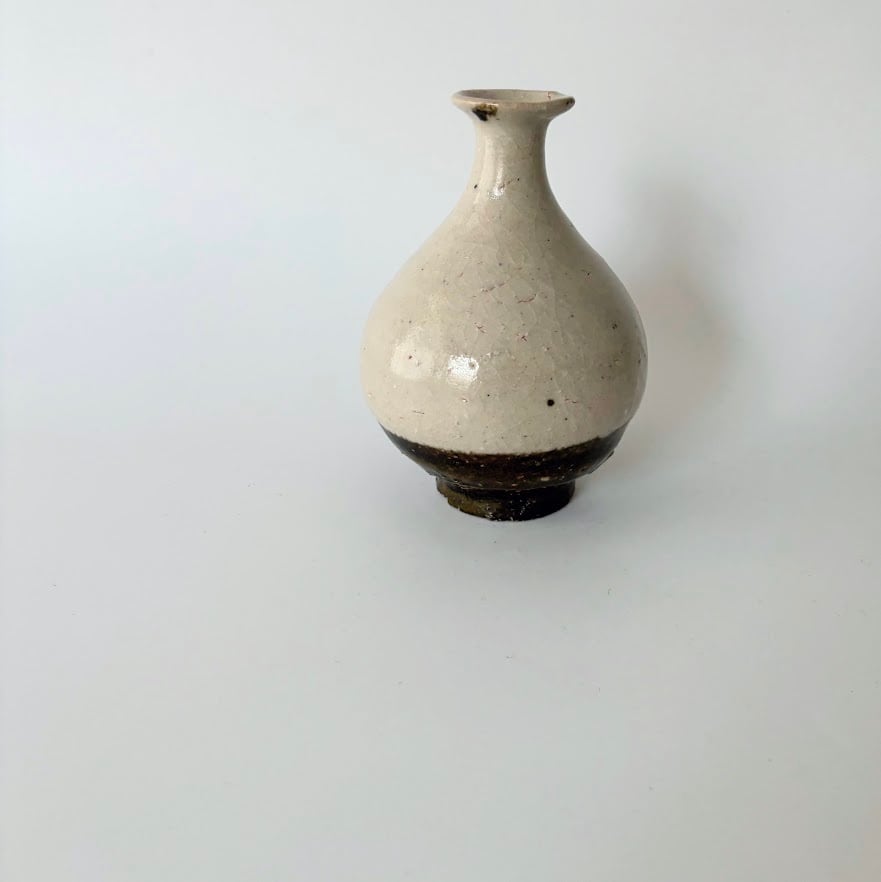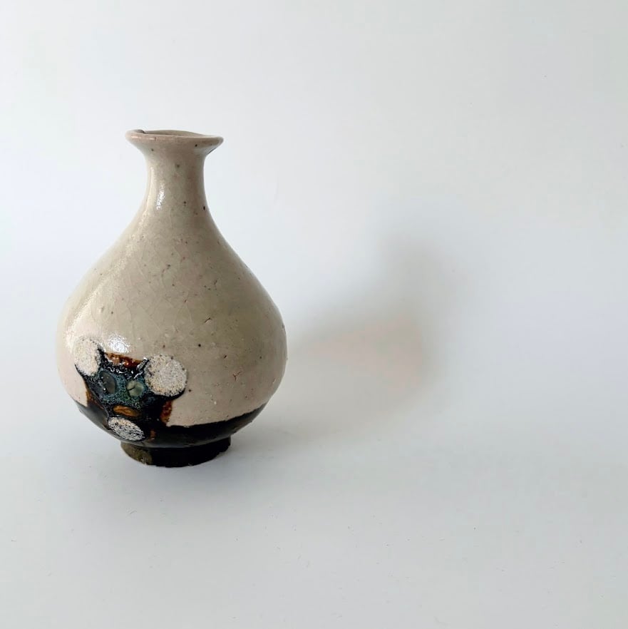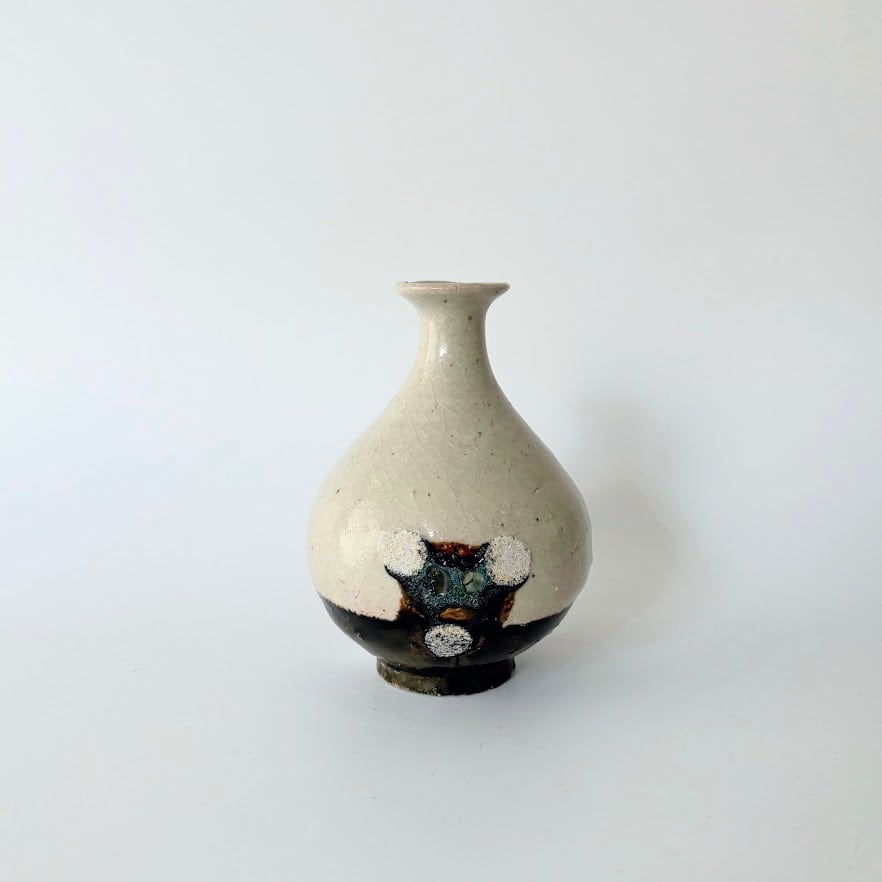 異なる色の釉薬をかける「掛け分け」の技法を用いたこちらの花器は、目止めに米糠を使用しているので、徳利としてもご使用いただけます。