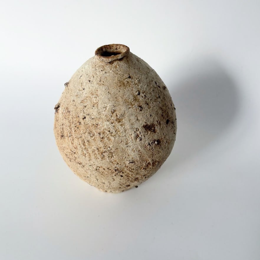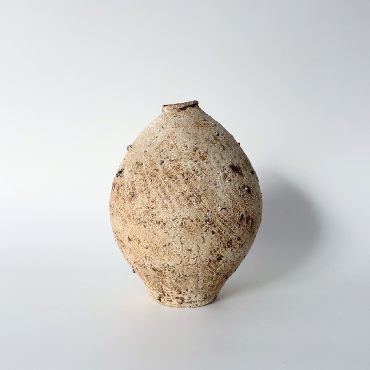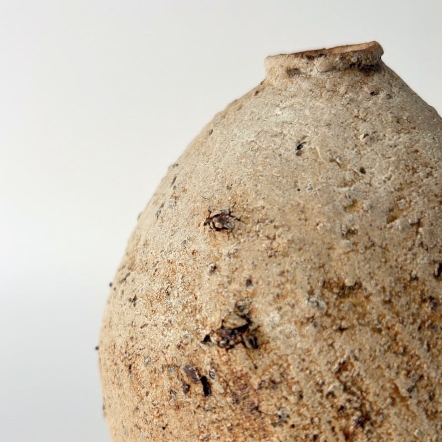 こちらの花器は、小石の粒々がちりばめられたプリミティブな印象の作品です。