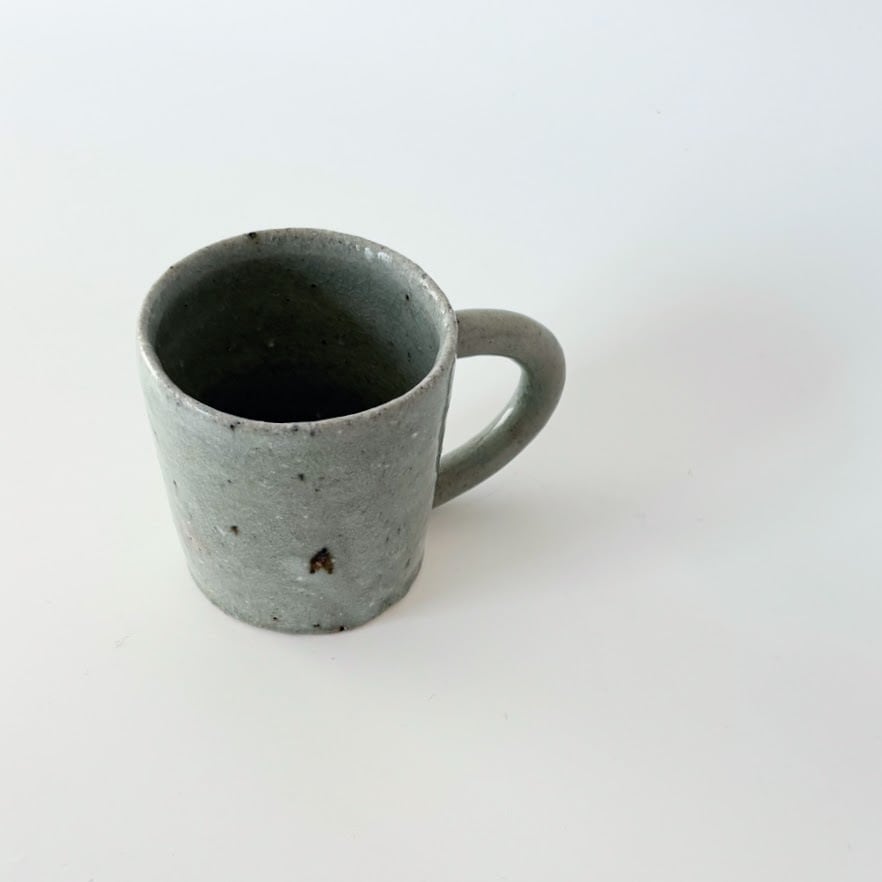 たっぷりサイズのこちらのマグは、握りやすい丸い把手が特徴的。