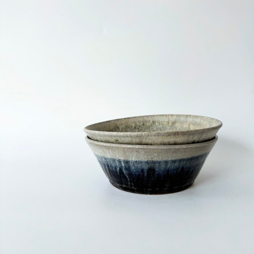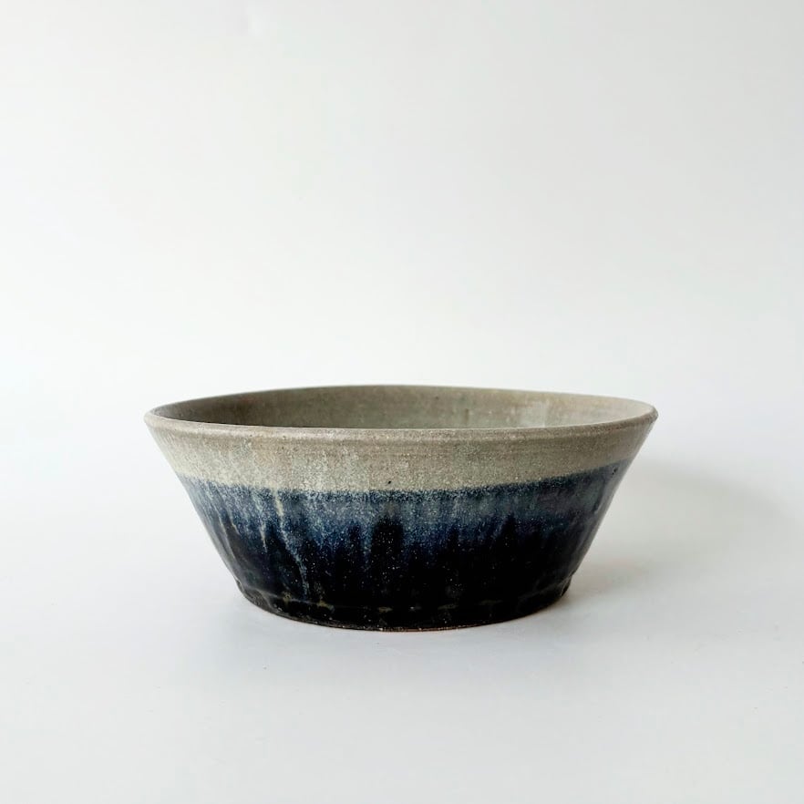 深い青の釉薬の流れが美しい深鉢です。